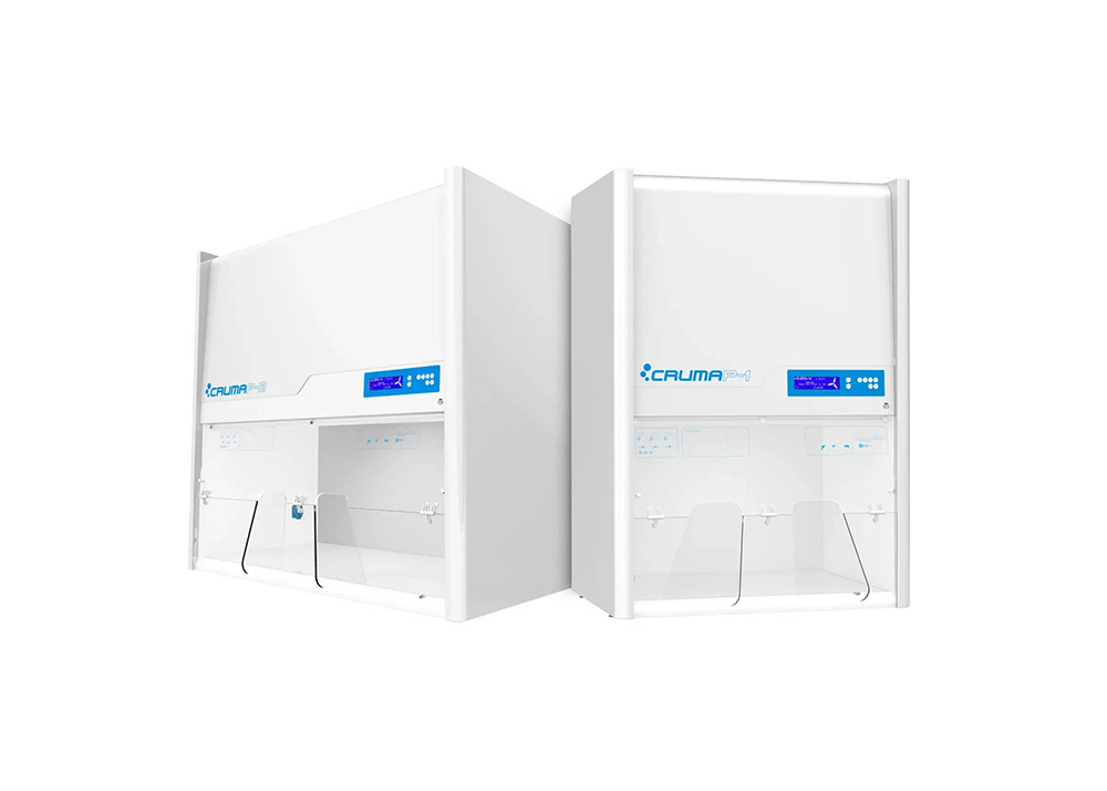 För att säkerställa att operatören är skyddad vid vägning av farliga ämnen har Cruma designat P1 och P2 som levereras med dubbla HEPA-filter (ett huvudfilter och ett säkerhetsfilter) för optimalt användarskydd samt skydd av omgivande och miljö. Våra pulverskåp ansluts inte till ventilation utan är fristående. Säkerhetsfiltret kan som option bytas ut mot ett aktivt kolfilter i fall applikationer kräver det.