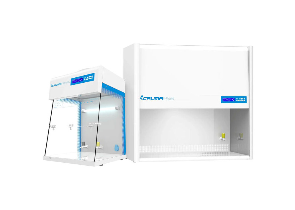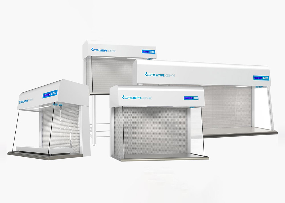 Spanska Cruma erbjuder vertikalflödesbänkar som möjliggör ISO klass 5 miljö med hjälp av ett H14 HEPA-filtrerat luftflöde. Dessa bänkar är framtagna för arbete med komponenter eller optik som är känsligt för partiklar och damm. Filtren är utbytbara och användaren meddelas av kontrollenheten för byte i jämna tidsintervall. Enheten levereras med en 15 W UV lampa för avdödning av eventuella mikroorganismer.